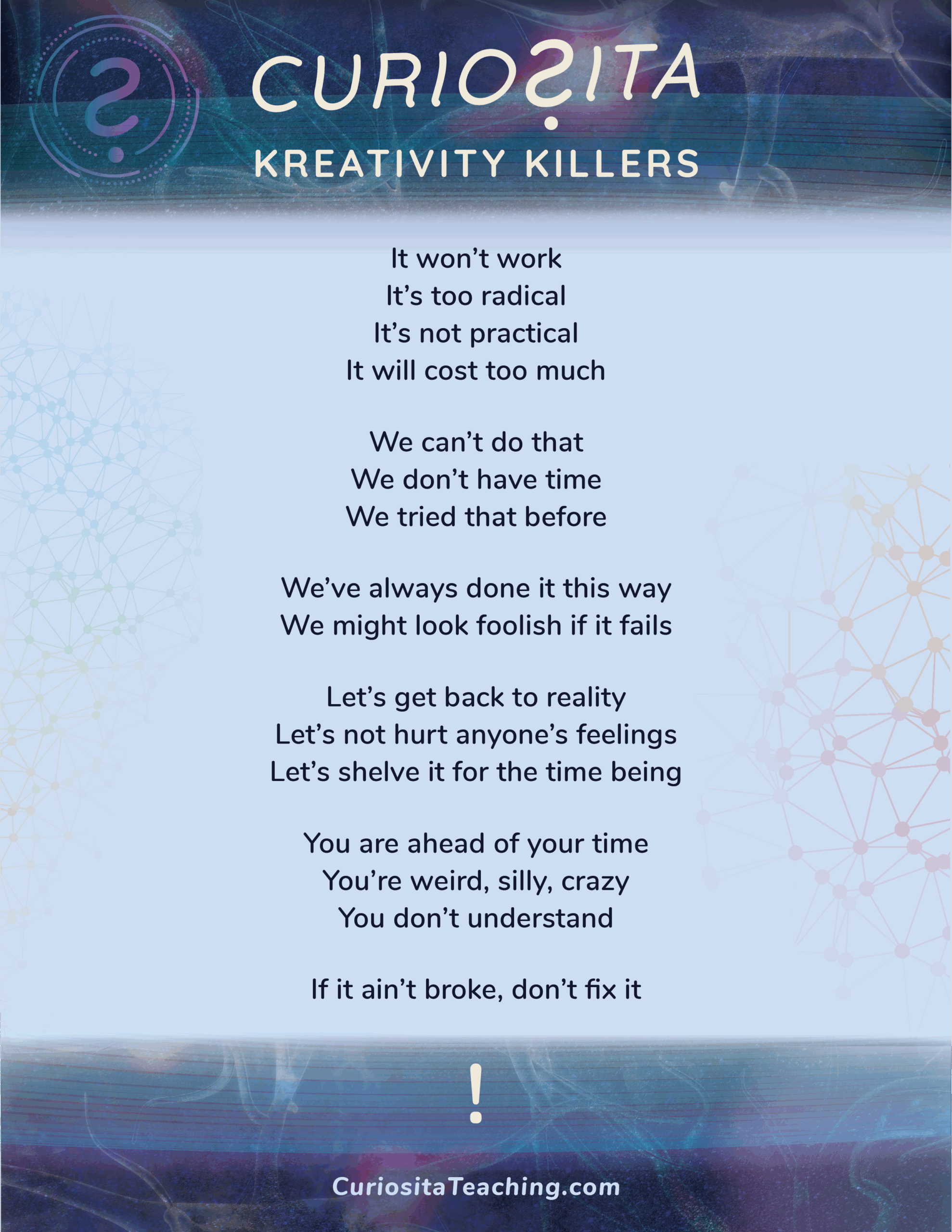 THREE FREE CLASSROOM MINI POSTERS TO CATALYZE YOUR STUDENTS’ CREATIVE THINKING.